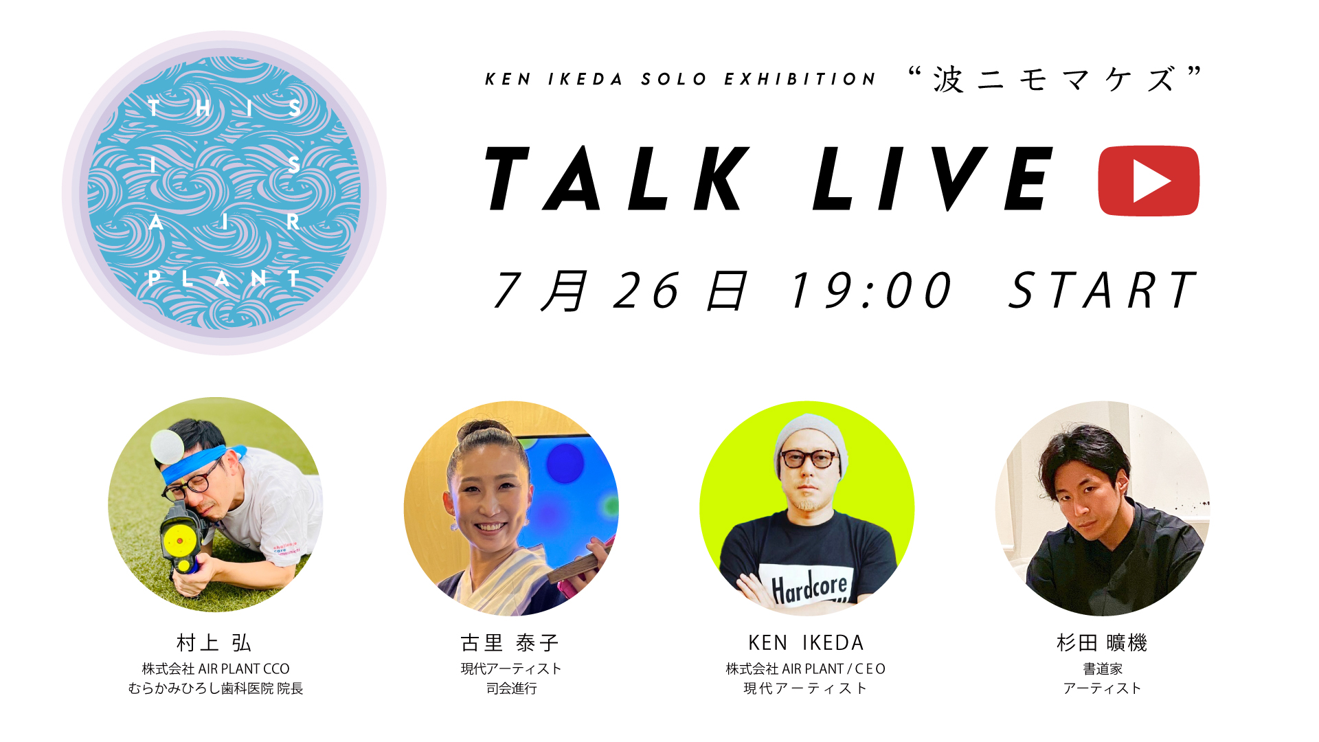 株式会社AIR PLANTは、開業22周年を記念して、企画展「THIS IS AIR PLANT」KEN IKEDA SOLO EXHIBITION “波ニモマケズ” を自社アトリエにて開催いたします。
